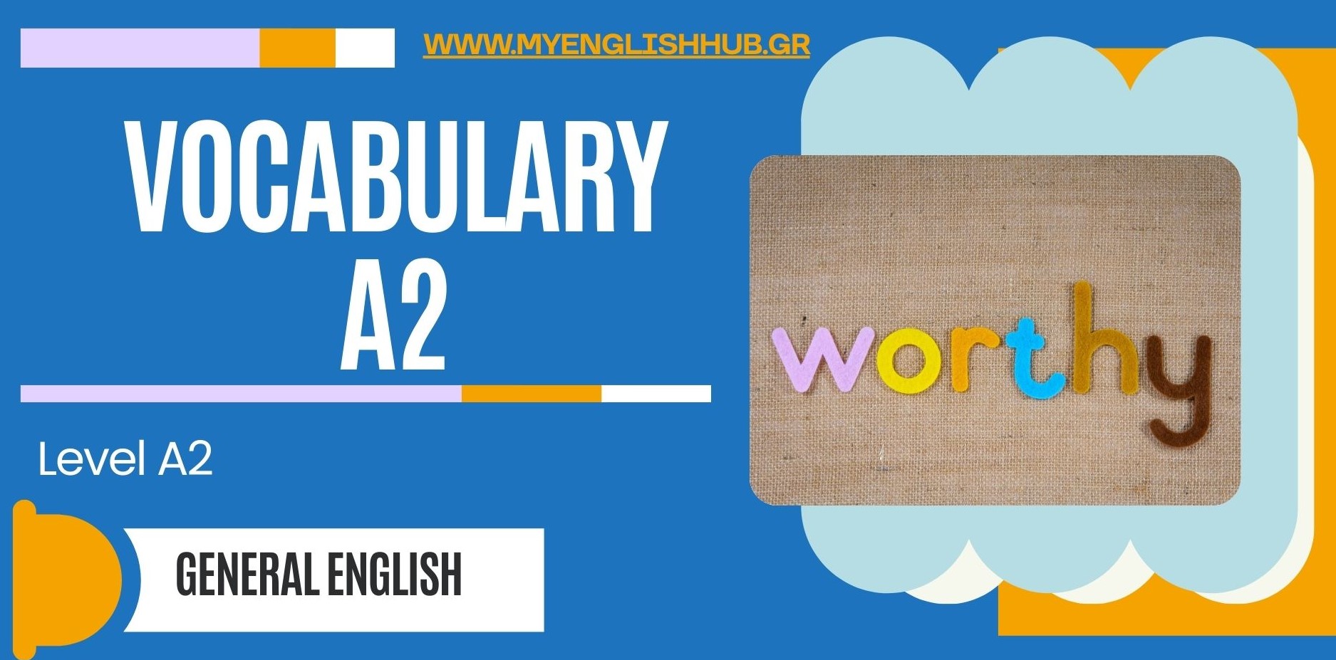 Αυτό το μάθημα έχει σχεδιαστεί για να διευρύνει το βασικό λεξιλόγιο του επιπέδου Α2, οδηγώντας τους μαθητές στο επίπεδο CEFR A2 (Στοιχειώδης Χρήστης). Η έμφαση δίνεται στην εκμάθηση λέξεων και φράσεων που σχετίζονται με πιο περίπλοκα καθημερινά θέματα, όπως: ταξίδια, ψώνια, εργασία, και περιγραφή γεγονότων/εμπειριών στο παρελθόν. Οι μαθητές θα αναπτύξουν λεξιλόγιο απαραίτητο για την απλή επικοινωνία και την κατανόηση σύντομων, καθημερινών κειμένων και συνομιλιών ρουτίνας.